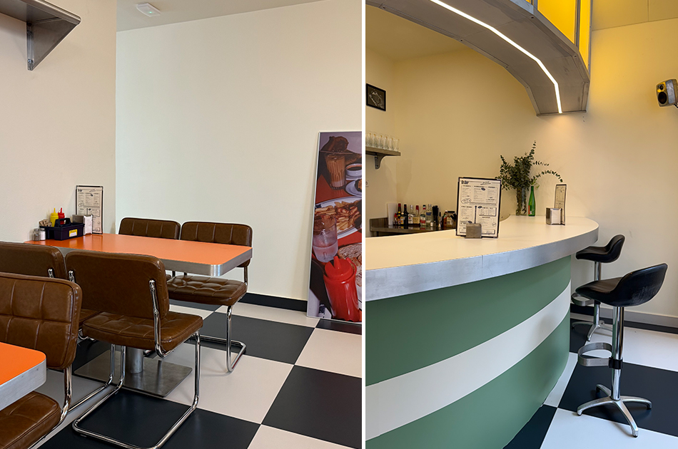 Acaban de abrir hace nada y los dueños son los de Watts Cantina, archiconocidos por sus deliciosas tortitas. Dentro es justo lo que te imaginas cuando piensas en un diner americano: banquitos y asientos acolchados en tonos llamativos, suelo de damero, barra metálica… Pincha aquí para ver más fotos y la carta.